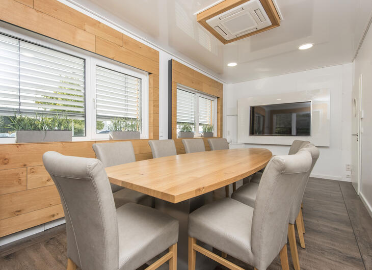 Un bon climat ambiant, beaucoup de lumière et un équipement moderne font des conteneurs de bureaux ELA des salles polyvalentes à louer et à acheter.
