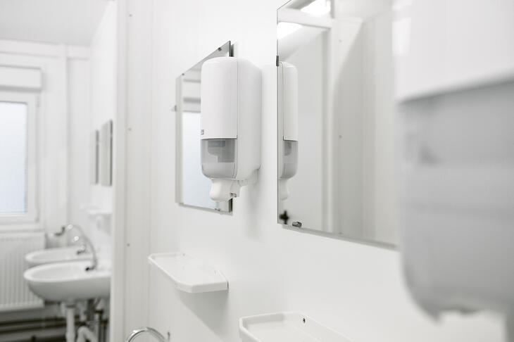 Les conteneurs de sanitaires ELA, à louer ou à acheter, ne passent pas inaperçus : équipés de manière flexible de WC, urinoir, lavabo, miroir et éclairage LED, ils peuvent être utilisés à tous les usages individuellement ou comme un espace sanitaire complet pour compléter les systèmes de conteneurs destinés. Le mobilier moderne et la décoration intérieure lumineuse sont harmonieux et faciles à entretenir.
